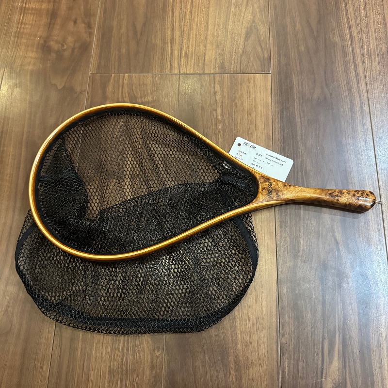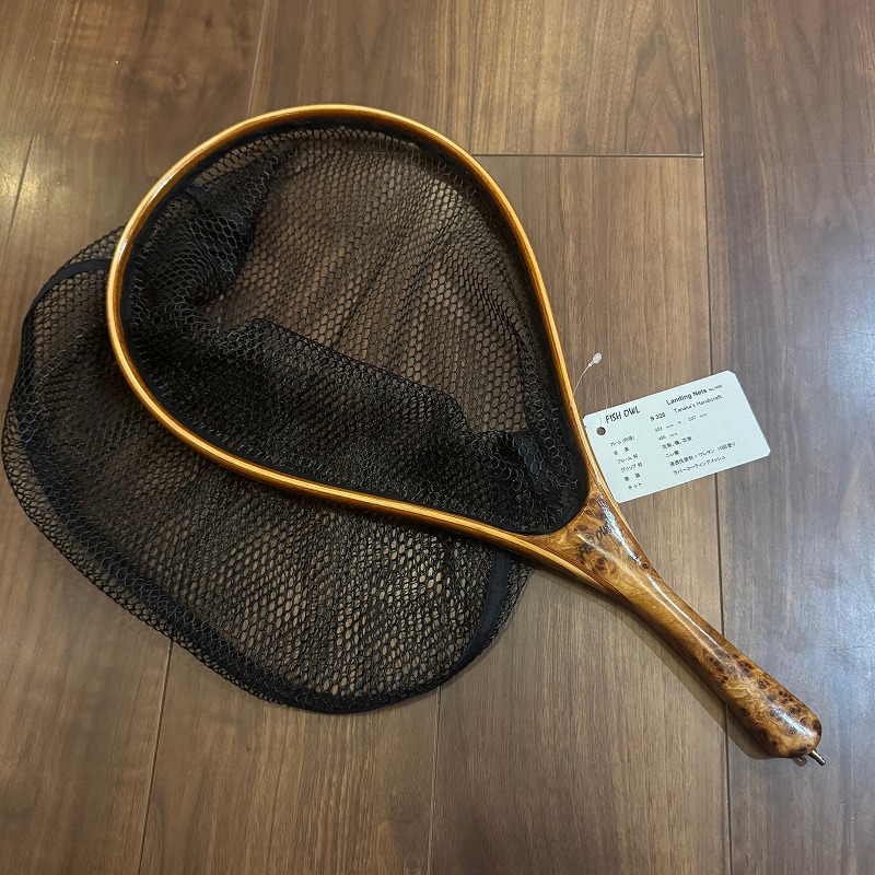 全長:495mm フレーム材:花梨、楓、花梨 グリップ材:ニレ瘤 ネット:ラバーコーティングメッシュ