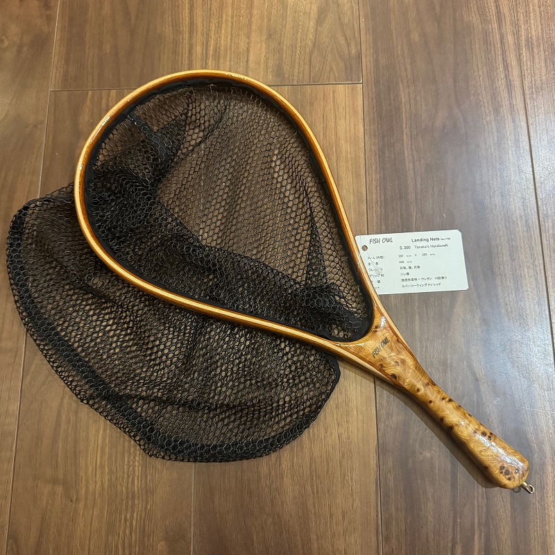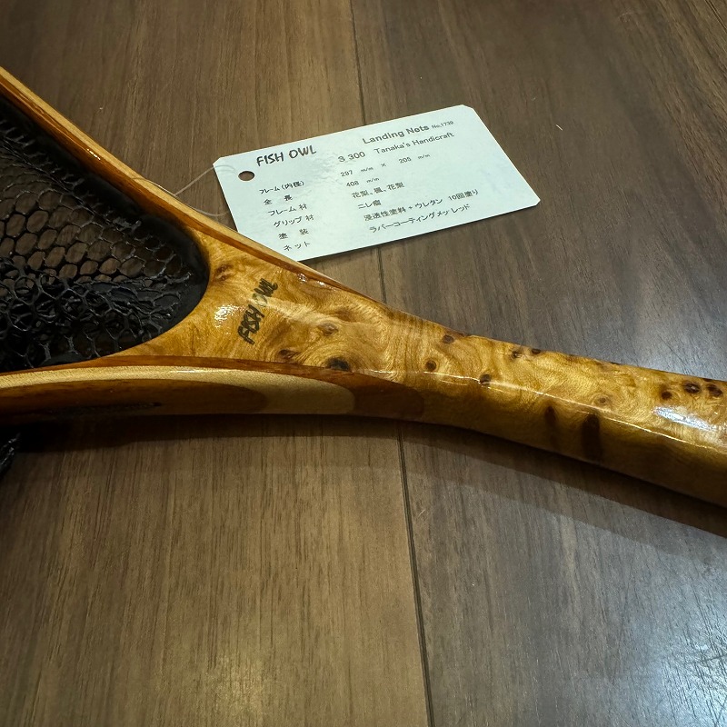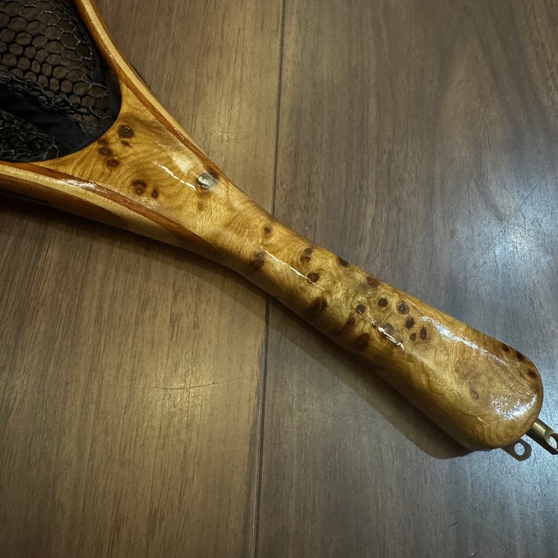 全長:408mm フレーム材:花梨、楓、花梨 グリップ材:ニレ瘤 ネット:ラバーコーティングメッシュ